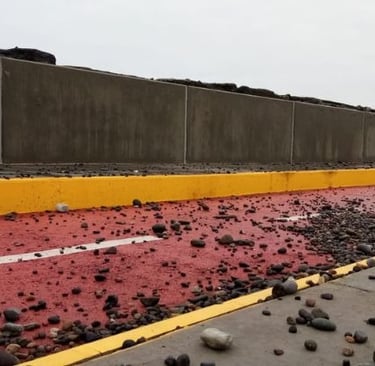 Cabe señalar, que, a pesar de este hecho, en el que uno de los cuatro carriles de la Costa Verde está parcialmente ocupada por estos elementos, el transito sigue desarrollándose con normalidad y sin restricciones.